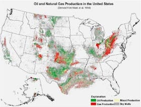 Olie- en aardgasproductiegebieden in de Verenigde Staten