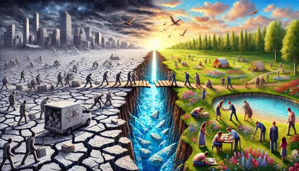 In een tijdperk waarin politieke en maatschappelijke discussies vaak gedomineerd worden door economische en pragmatische overwegingen, rijst de vraag: wat gebeurt er als liefde, samenwerking en zorg worden uitgesloten van het publieke debat? Deze kernwaarden, die essentieel zijn voor het opbouwen van een gezonde en duurzame samenleving, lijken steeds meer op de achtergrond te raken in discussies over beleidsvorming, sociale verandering en economische groei. Het negeren van deze waarden heeft echter verstrekkende consequenties die zowel het individu als de samenleving in zijn geheel raken. Dit essay onderzoekt de mogelijke gevolgen van een samenleving die liefde, samenwerking en zorg uitsluit uit haar gesprekken en besluitvorming.