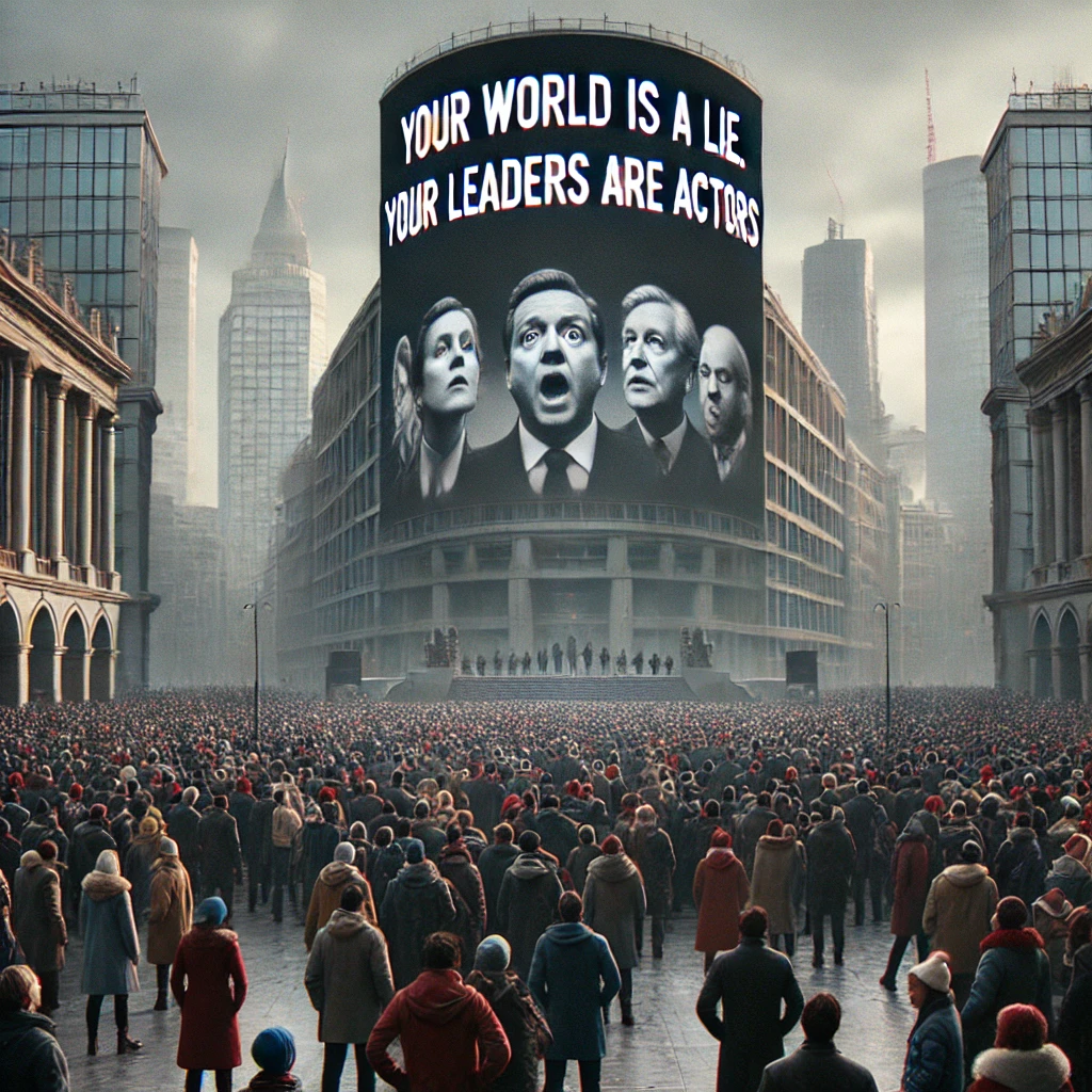 In het geheim begon een kleine groep mensen te vermoeden dat er iets niet klopte. Zij merkten de herhaling van patronen in de politiek op, de onechte emoties in de toespraken van leiders, en de onverklaarbare afwezigheid van echte verandering, ondanks de eindeloze beloften. Deze groep bestond uit schrijvers, onderzoekers, en voormalige acteurs die uit de gratie waren gevallen.