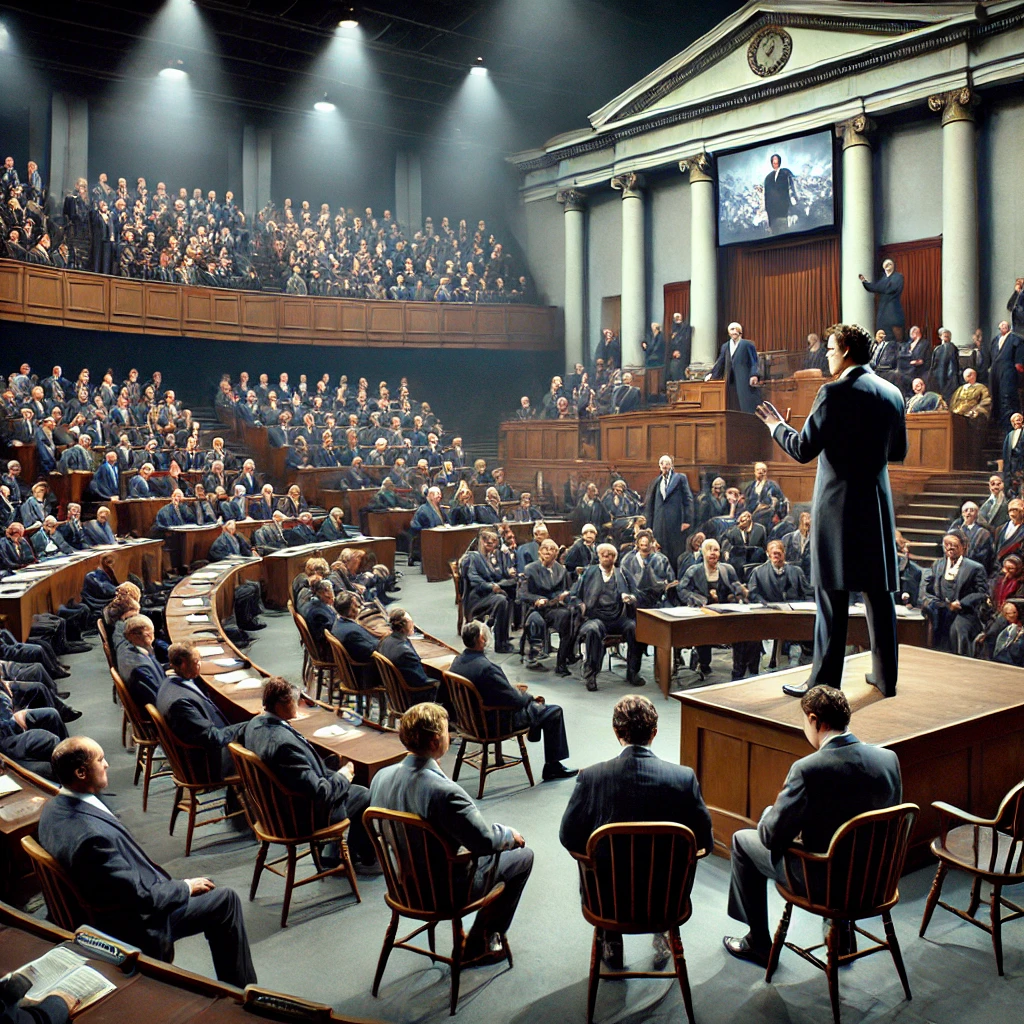 Elke acteur had zijn eigen script, geschreven door de Schrijverskamer, een elite groep scenaristen die elke dialoog, elk debat en elke publieke uiting tot in de puntjes voorbereidde. De schrijvers hadden een ongekende macht: zij bepaalden welke ideologieën de wereld zou omarmen, welke conflicten de media zouden domineren, en welke veranderingen in de samenleving plaatsvonden. Elk aspect van de zogenaamde “politieke dynamiek” was een zorgvuldig uitgedacht onderdeel van het script.