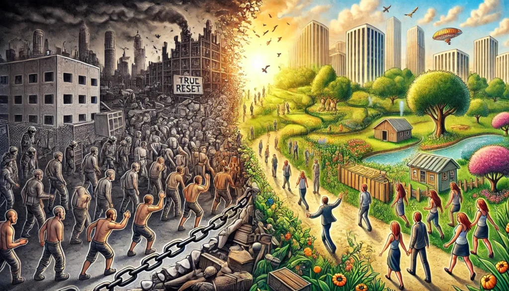 De werkelijke reset is geen beleidsplan of opgelegde agenda, maar een innerlijke verschuiving die zich manifesteert in onze manier van organiseren, samenwerken en betekenis geven aan het leven. Het is een keuze om ons niet langer te laten leiden door angst en schaarste, maar door vertrouwen en overvloed.
