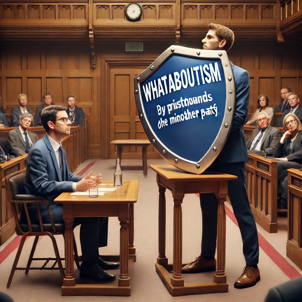 (Whataboutism: de vraag wordt niet beantwoord en de aandacht wordt verlegd naar de fouten van de tegenpartij in het verleden.)