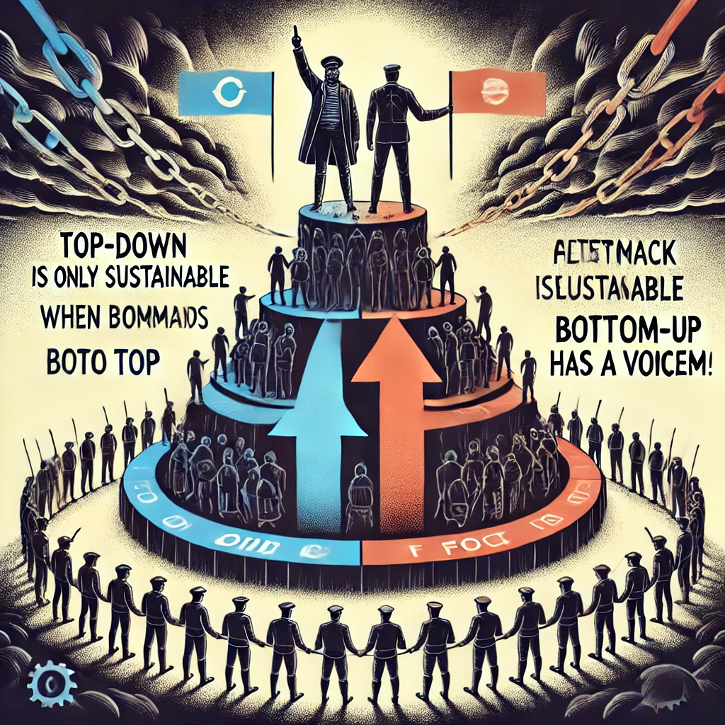 Top-down-hiërarchieën zijn pas houdbaar als er ruimte is voor feedback en evaluatie. Feedback-constructies ondermijnen rigide machtsstructuren door macht te decentraliseren, collectieve intelligentie te benutten en inefficiënties bloot te leggen. Zonder feedback en transparantie worden hiërarchieën dictatoriaal en zelfdestructief. De enige manier om macht te corrigeren, is door op elk niveau feedback en evaluatie te eisen.