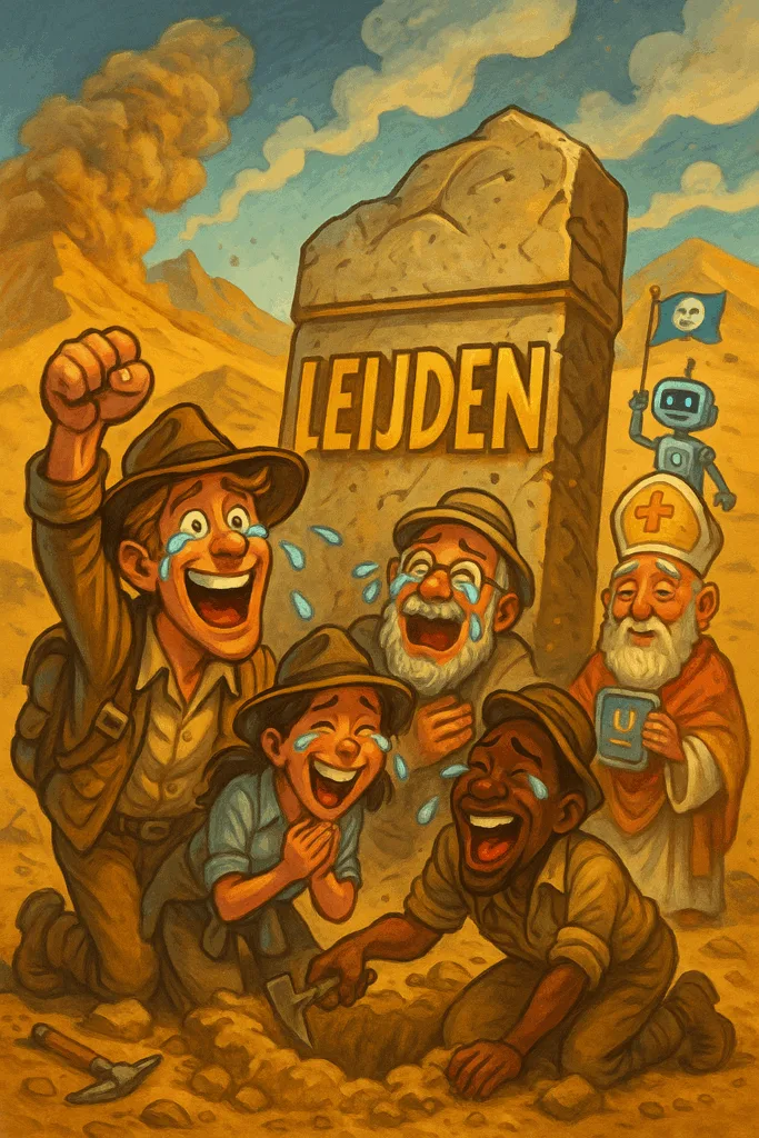 De archeologen weenden. Niet van verdriet, maar van herkenning. Ze hadden iets blootgelegd dat groter was dan geschiedenis: een vergeten waarheid. Het woord leijden bracht hen samen, bracht robots aan het lachen, priesters aan het denken, kinderen aan het dansen. En boven hen brak de hemel open, niet van bliksem, maar van begrip.